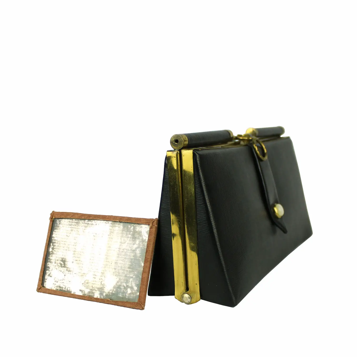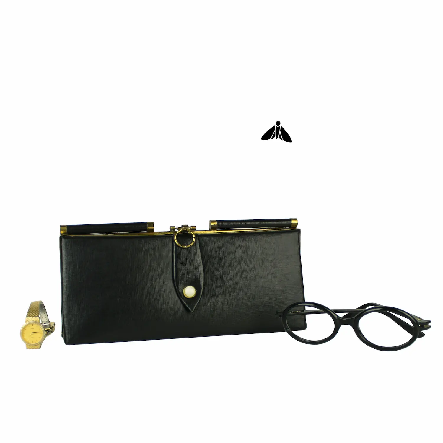 1960’ler dönemine ait bu clutch el çantası, kompakt formu ve sade yapısıyla dönemin kullanım anlayışını yansıtır. Elde taşımaya uygun yapısı, gereksiz detaylardan arındırılmış bir duruş sunar. Sessizdir; ama yerini bilir.