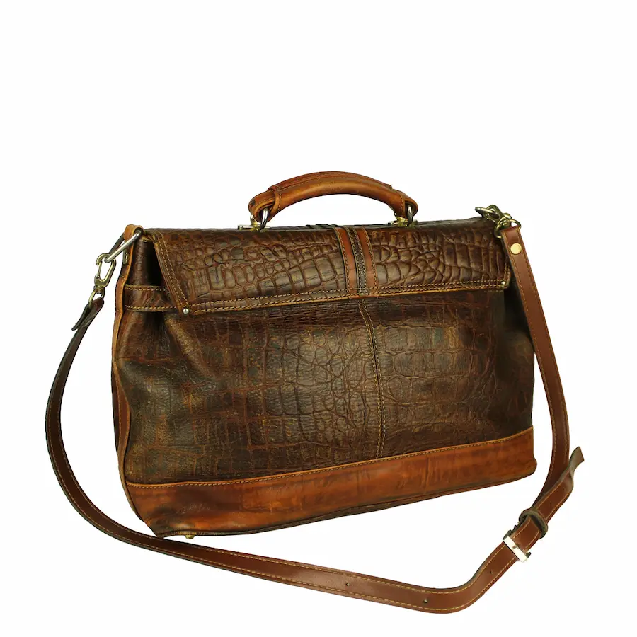 Ürün Hikayesi ve Ruhu: Bazı parçalar sadece eşya taşımak için değil, yaşanmışlıkları bugüne taşımak için vardır. "En Derin Çizgiler", 1970’lerin maskülen ve güçlü tasarım anlayışını, zarafetle birleştiren nadir bir parça. Timsah dokusunun sunduğu o karakteristik derin hatlar, çantaya zamansız bir karakter katıyor. Bir kütüphane masasında, eski bir tren yolculuğunda veya bugünün modern sokaklarında... Nerede olursa olsun, sahibine geçmişin o asil duruşunu fısıldıyor.