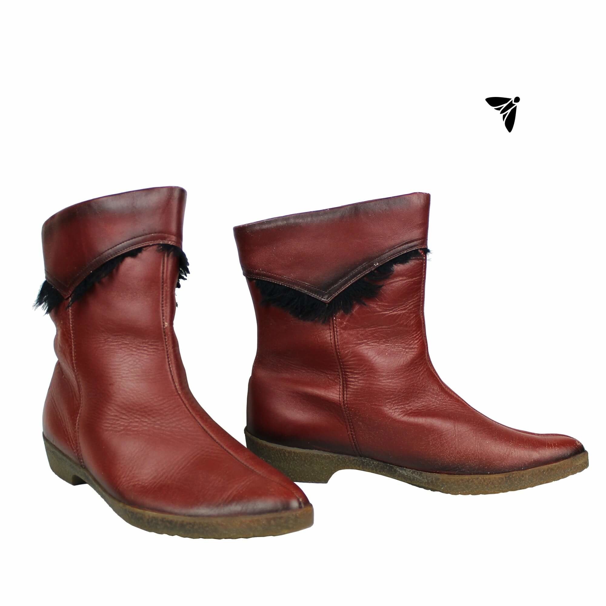60'lar Kırmızı Kısa Deri Çizme